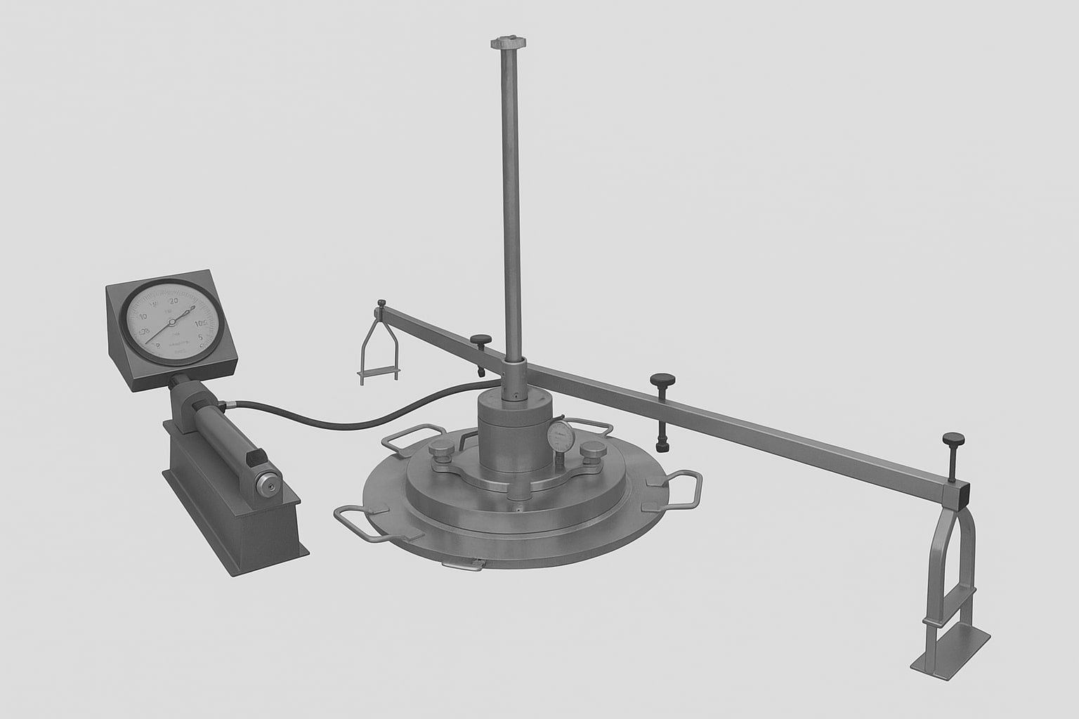 JS-250 Plate Bearing Test Set adalah perangkat lengkap untuk melakukan uji daya dukung ultimate tanah secara langsung di lapangan menggunakan metode pembebanan pelat. Mengacu pada standar internasional ASTM D-1194, alat ini digunakan untuk menentukan kekuatan tanah dasar sebelum pembangunan struktur besar seperti jalan raya, landasan pacu, jembatan, dan gedung bertingkat.